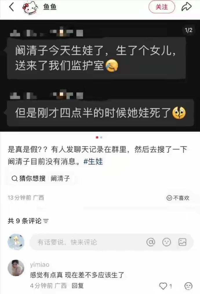 有句话咋说来着——“谣言止于智者。”这话放在现在的娱乐圈,简直太贴切了。互联网时代,消息一夜之间就能飞上热搜,但是真真假假、稀奇古怪的事儿也就跟下饺子一样一锅端。我是婵婵,今天不聊别的,就跟大家唠唠阚清子最近那档子事儿,啧啧,真是比八点档还离谱。你们有没有刷到过那条深夜爆料?说什么阚清子在某私立医院生了个早产儿,还是什么多重畸形,无膀胱无肛门云云。这内容一出来,网络直接炸锅。自媒体账号半夜三更发消息,说得煞有介事,还弄了一张匿名聊天截图当证据。截图里头写得可详细了,从抢救过程、导尿管插不进去,到凌晨四点宣告死亡,各种细节铺天盖地。但你要问我,这玩意怎么看都像编剧写的小作文——戏剧张力拉满,就是没实锤。